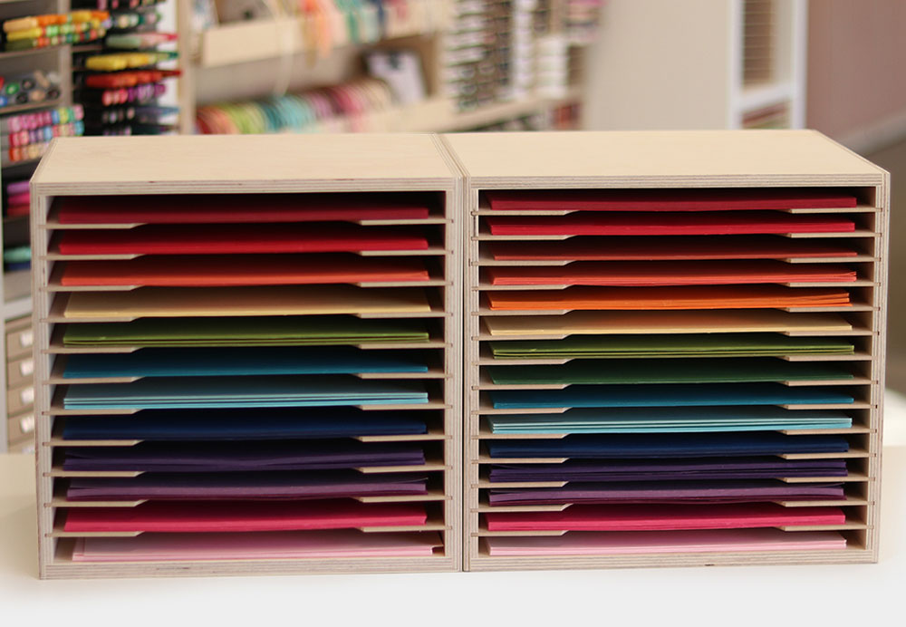 If you keep your paper in a closet, under your desk, or in a corner, the 12x12 Paper Crate & Rolling Base for Paper Crate is a fantastic option. The Paper Crate stores your paper in 12x12 Hanging File Folders that can be labeled so you can quickly find what you need. When you add the Rolling Base for Paper Crates, you can wheel your paper storage unit to your workstation. Are you worried about dust or your cat jumping in the crate? Add a Paper Crate cover for added protection and a bonus work surface!