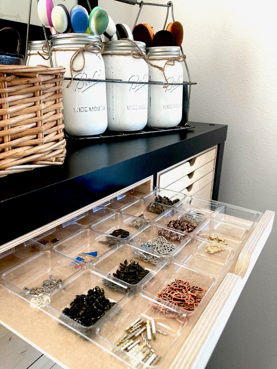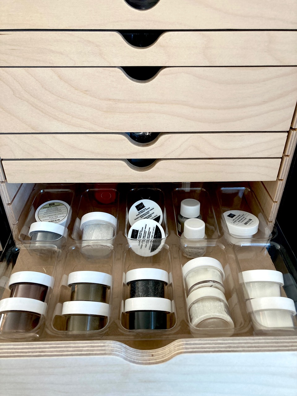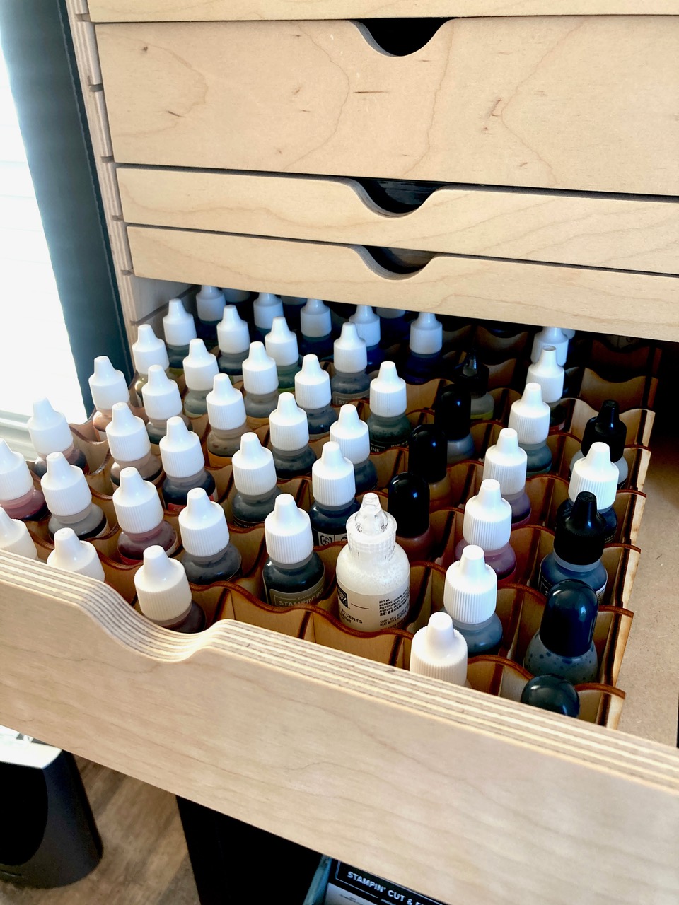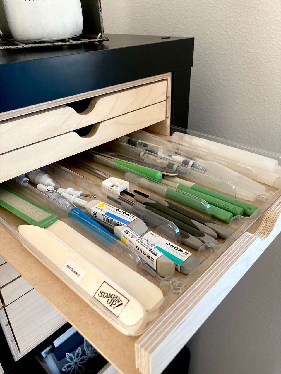 Once I got my hands on some of these amazing products, my list of "wants" grew. I had to get the Drawer Cabinets next. These cabinets are the best things ever! I have three now. I can keep all my tiny embellishments safe in an Accessory Tray, where I can again easily find them. I can keep my ink refills all in one spot without having to dig through a drawer with the Grid Storage System.