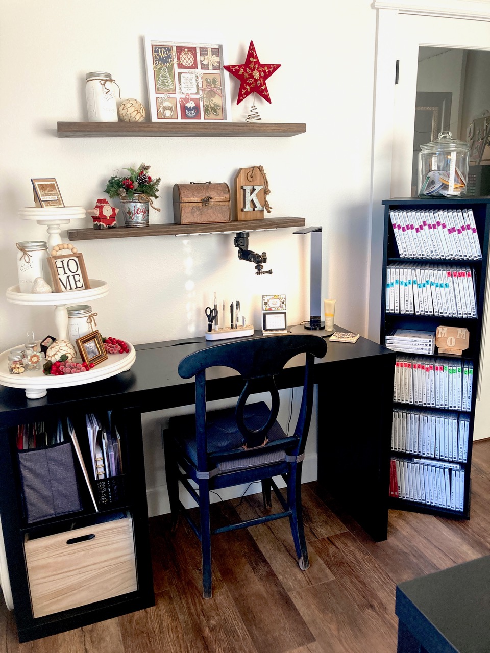 We often see craft studios with white furniture and a splash of color. It's a beautiful look with endless possibilities for decor. However, dark furniture can be equally beautiful, highlighting the rainbow of color even more! Kim's studio does just that. We're going to let Kim take you on her journey of creating a gorgeous space to unleash her creativity!