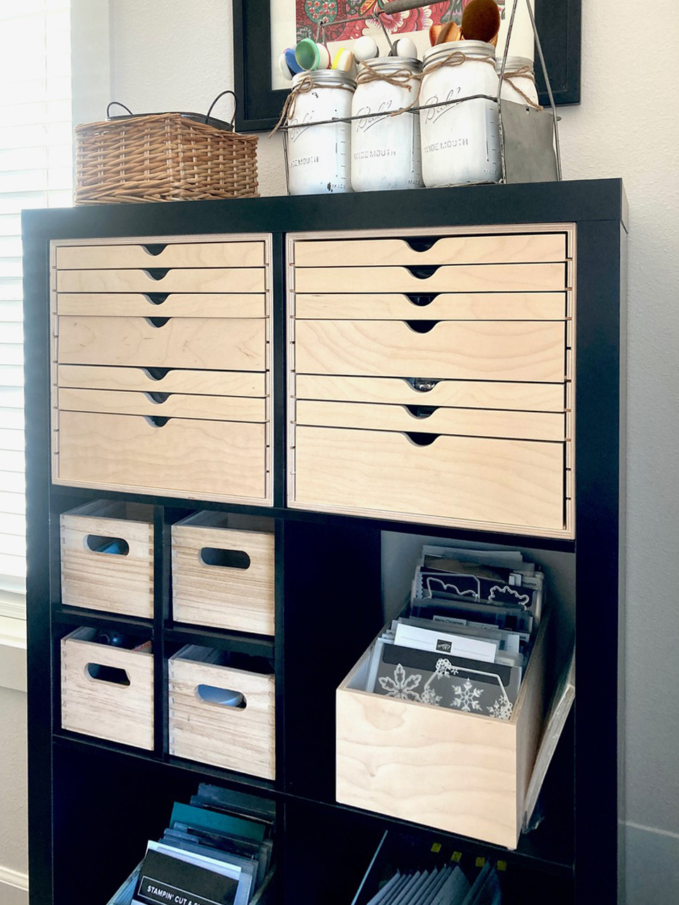 My very first purchase was the 12x12 Paper Holders. The cubed organizers (ex. Kallax unit from IKEA®) seemed like it was the best for my space, so all my items from Stamp-n-Storage are the for IKEA® size option.