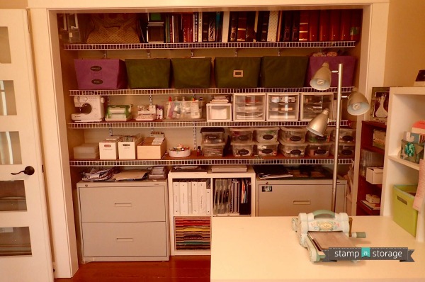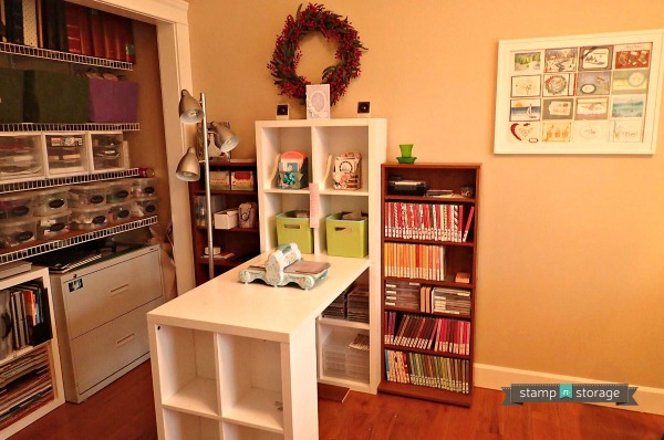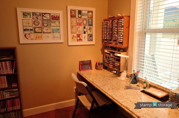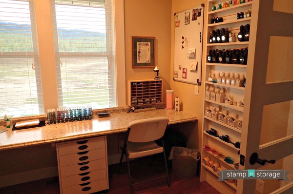 Elaine has done such a wonderful job decorating and organizing her adorable craft studio. We're so happy to hear that she is pleased with her Stamp-n-Storage products and enjoys spending time unleashing her creativity!