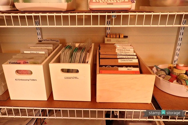 Above, Elaine has transformed a closet to become a storage area for all of her embellishments. Her Stamp-n-Storage Paper Holders for IKEA® fit in a small 2x2 IKEA® Kallax at the bottom of the shelving. We love seeing how Elaine likes to keep everything efficiently labeled and organized. Wouldn't you just love to spend some time crafting in this room?