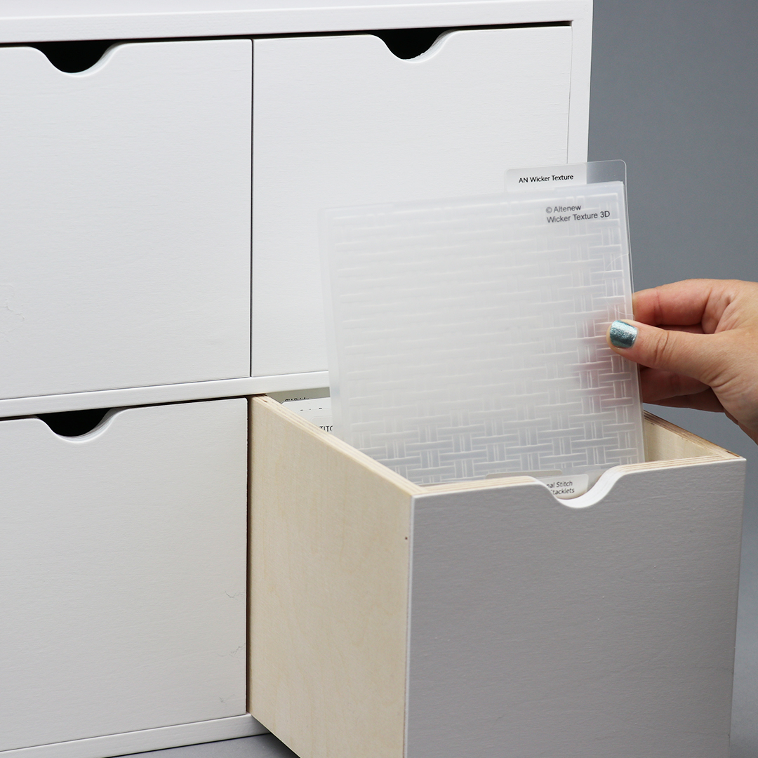 The Drawer Cabinet for 6x6 is another ideal choice for organizing your embossing folders and other 6x6 supplies. It was designed to keep all your 6x6 items neatly arranged. This cabinet is essential for any card-making or paper-crafting enthusiast.