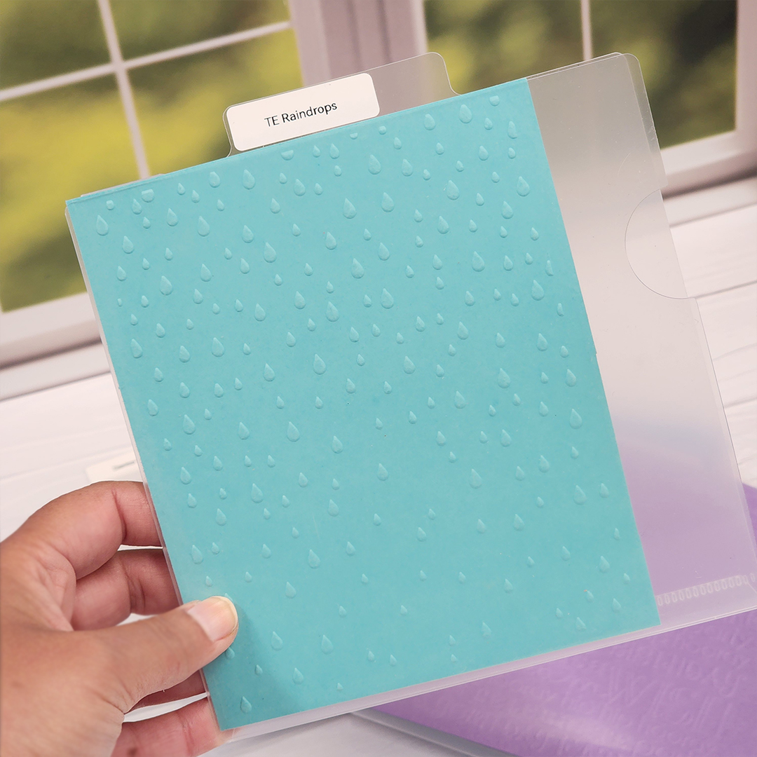 Tip: Emboss a piece of cardstock and slide it in front of your embossing folder in the Paper Sleeve. Not only does this add a bit of color to your sleeve, but it will help you quickly identify the embossed design.