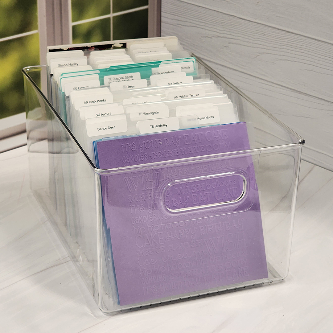 If you are looking for a stylish and practical way to store your embossing folders, the Large Acrylic Crate is perfect for you. These clear craft storage bins are incredibly versatile, fitting perfectly on your desk, inside a cabinet, or within the cubes of your IKEA® Kallax unit.