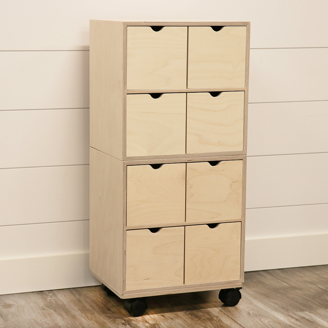 Available in natural wood or painted white, the Drawer Cabinet for 6x6 will seamlessly blend into any craft space. Its stylish and functional design ensures your craft room remains organized and aesthetically pleasing. For added convenience, you can stack multiple Drawer Cabinets and even add a rolling base, transforming it into a mobile storage piece that can move around as needed.