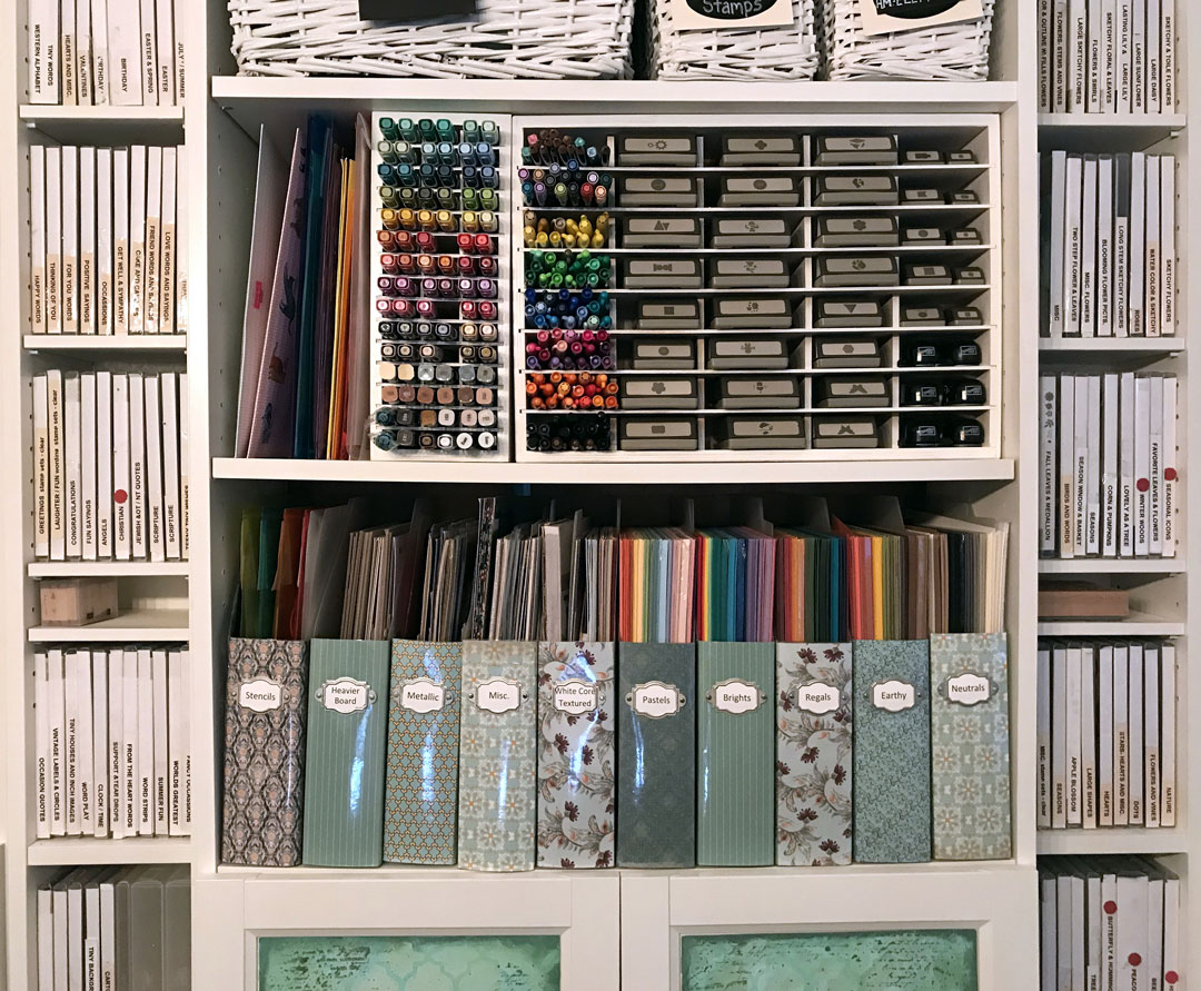 "I find myself walking into my art room now and just standing there smiling, ready for my next creative adventure. The enjoyment I receive in my organized and inviting room is more than I ever expected. Thank you, Stamp-n-Storage, for your well-made, attractive, and simple organization units. They have been such a blessing."
