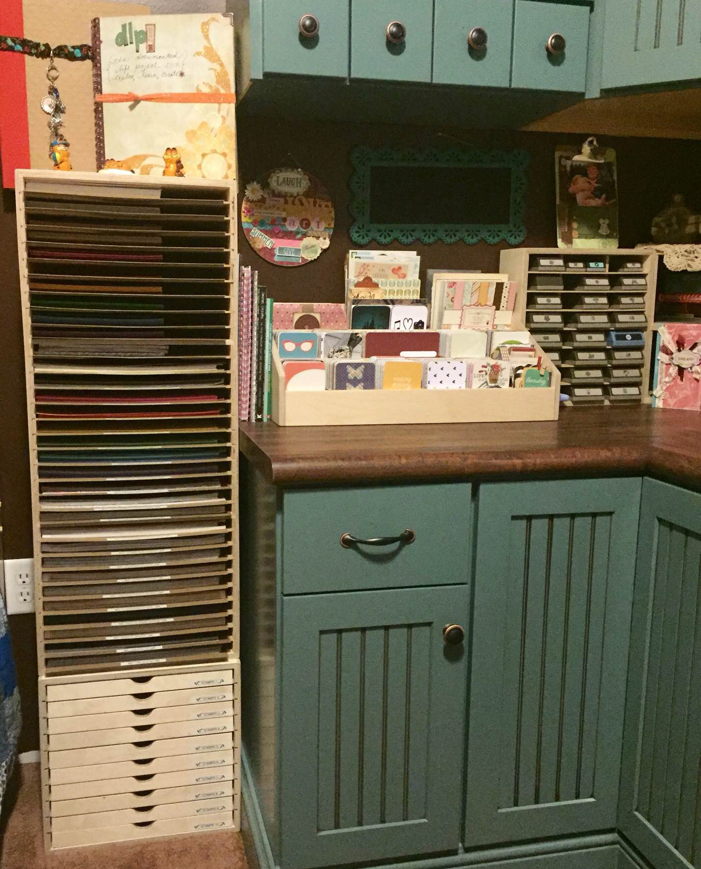 "Now that my supplies are put away, and everything has a home, it makes it so much easier to start and finish a project. Everything is right at my fingertips. Instead of spending time searching for something, I know right where it is. More time to craft!" says Cindy. This beautiful space is organized with the Ink Pad and Marker Holder, a Corner Shelf and Lock Down Punch Holder.