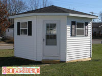 Attached are some pictures of the craft building that was built this summer. It’s 12′ on two sides and 8′ on two sides. The door is in the fifth shortest side. (I was trying to come up with somethingbesides just a square building.)