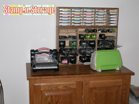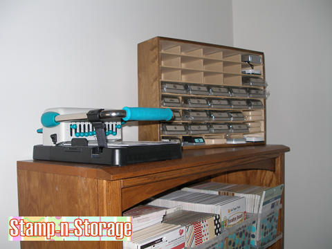 Vicki has a Whale Tail Punch Holder and 30 Ink Pad Holder on this cabinet against the wall.