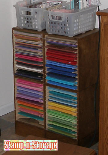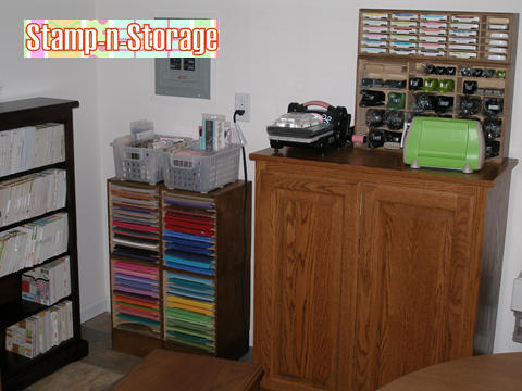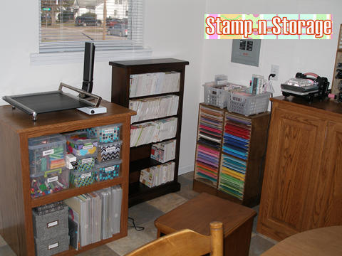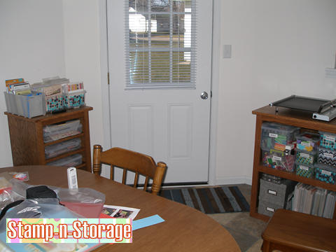 In this corner she’s placed her four 8.5 x 11 Paper Holders along with a shelf for her stamp cases.